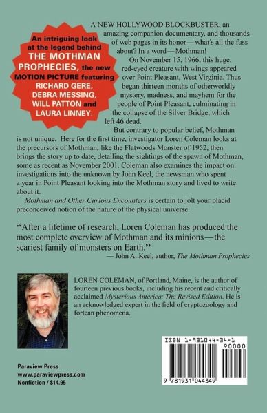 A new Hollywood blockbuster, an amazing documentary, and thousands of web pages in its honor. What's the fuss? In a word--Mothman! A famous investigator examines the reports of this huge, red-eyed creature with wings seen over Point Pleasant, West Virginia on November 15, 1966?and the spawn of Mothman seen before and after that date.