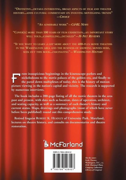 From inauspicious beginnings in the kinetoscope parlors and nickelodeons to the movie palaces of the golden era, and finally to the pared down multiplexes of today, this is the history of motion picture viewing in the nation's capital and vicinity. The research is supported by numerous interviews. The book includes a 200-page listing of all the movie theaters in the area past and present, with data such as location, dates of operation, architect, and seating capacity, as well as a summary of each theater's history and current status. Maps, drawings and photographs (most of which have never before been published) round out this comprehensive study.
