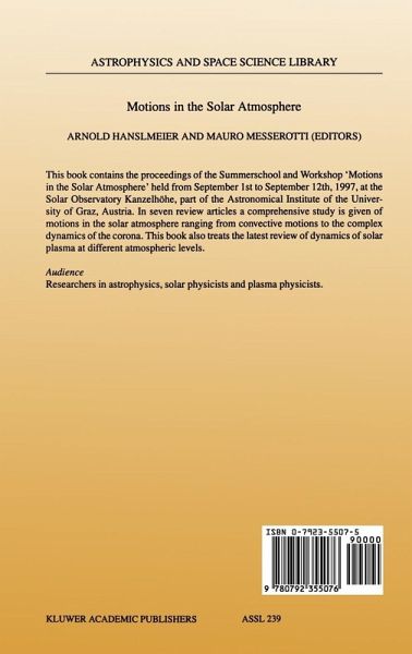 This book contains the proceedings of the Summerschool and Workshop Motions in the Solar Atmosphere held from September 1st to September 12th, 1997, at the Solar Observatory Kanzelh6he, which belongs to the Astronomical Institute of the University of Graz, Austria. This type of conference has proved to be very successful in bringing together experts from specialized topics in solar physics and young scientists and students from different countries. Moreover, the summerschool was accompanied by a workshop which offered young scientists the opportunity to present their new results to a general audience. In total the summerschool and the workshop were attended by 50 par ticipants from 10 different countries. The topic selected was quite general, covering the whole solar atmo sphere and its dynamic processes: from dynamo actions and large and small scale motions in the photosphere through the complex dynamics of the chro mosphere to the corona. Also the possible influences of variations in solar output parameters to the Earth's climate were addressed. The main lec tures were given by 7 lecturers. Furthermore, there were 20 contributions to the workshop which were presented in oral form. The selection of the Kanzelh6he Solar Observatory located in Central Europe, Austria, also permitted colleagues from the former eastern coun tries to attend the meeting. At the Kanzelh6he Observatory new instru ments had been recently installed so that the meeting provided a further stimulus for the local people working there.