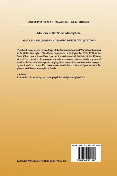 This book contains the proceedings of the Summerschool and Workshop Motions in the Solar Atmosphere held from September 1st to September 12th, 1997, at the Solar Observatory Kanzelh6he, which belongs to the Astronomical Institute of the University of Graz, Austria. This type of conference has proved to be very successful in bringing together experts from specialized topics in solar physics and young scientists and students from different countries. Moreover, the summerschool was accompanied by a workshop which offered young scientists the opportunity to present their new results to a general audience. In total the summerschool and the workshop were attended by 50 par ticipants from 10 different countries. The topic selected was quite general, covering the whole solar atmo sphere and its dynamic processes: from dynamo actions and large and small scale motions in the photosphere through the complex dynamics of the chro mosphere to the corona. Also the possible influences of variations in solar output parameters to the Earth's climate were addressed. The main lec tures were given by 7 lecturers. Furthermore, there were 20 contributions to the workshop which were presented in oral form. The selection of the Kanzelh6he Solar Observatory located in Central Europe, Austria, also permitted colleagues from the former eastern coun tries to attend the meeting. At the Kanzelh6he Observatory new instru ments had been recently installed so that the meeting provided a further stimulus for the local people working there.