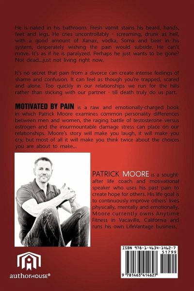 He is naked in his bathroom. Fresh vomit stains his beard, hands, feet and legs. He cries uncontrollably - screaming, drunk as hell, with a good amount of Xanax, vodka, Soma and beer in his system, desperately wishing the pain would subside. He can't move. It's as if he is paralyzed. Perhaps he just wants to be gone? Not dead...just not living right now. It's no secret that pain from a divorce can create intense feelings of shame and confusion. It can feel as though you're trapped, scared and alone. Too quickly in our relationships we run for the hills rather than sticking with our partner - till death truly do us part. Motivated By Pain is a raw and emotionally-charged book in which Patrick Moore examines common personality differences between men and women, the raging battle of testosterone versus estrogen and the insurmountable damage stress can place on our relationships. Moore's story will make you laugh, it will make you cry, but most of all it will make you think twice about the choices you are about to make...