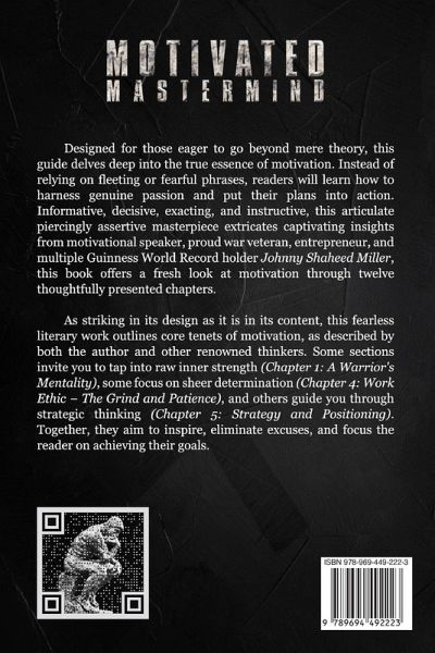 In "Motivated Mastermind," Johnny S. Miller embarks on a journey to uncover the fundamental principles that propel individuals towards success in every facet of life. Through twelve meticulously crafted chapters, Miller delves deep into the essence of what it takes to cultivate a mindset of unwavering determination and integrity. Beginning with the foundational concept of a Warrior Mentality, Miller sets the stage for readers to embrace challenges head-on with courage and resilience, laying the groundwork for the transformative journey ahead. Discipline emerges as a cornerstone in Miller's exploration, highlighting the indispensable role it plays in achieving one's goals. He emphasizes the importance of consistency and self-control, guiding readers towards mastering their habits and routines to drive sustained progress. Building upon this framework, Miller delves into the intricacies of Focus and Concentration, illuminating the path towards harnessing mental clarity and unwavering attention amidst life's distractions. Through practical strategies and insightful anecdotes, he empowers readers to sharpen their focus and channel their energy towards meaningful pursuits. Miller further expands upon the notion of Work Ethic, underscoring the significance of diligence and perseverance in the pursuit of excellence. Drawing from his own experiences and those of successful individuals, he demonstrates how a strong work ethic serves as a catalyst for achievement and fulfillment. As the journey progresses, readers are guided through the strategic realm of Strategy and Positioning, where Miller unveils the art of navigating complexities with foresight and purpose. From formulating effective plans to seizing strategic opportunities, he equips readers with the tools to navigate the ever-evolving landscape of life and career. The narrative unfolds with a focus on Execution, Integrity, and Persistence, emphasizing the critical role each plays in realizing one's aspirations. Miller underscores the importance of taking decisive action, staying true to one's values, and persevering in the face of adversity. Alongside these principles, he explores the transformative power of Interdependence, Energy, Instinct, and Intuition, illuminating the interconnectedness of personal growth and collaborative effort. As the journey culminates in the chapters on Checkmate: Endgame and Refined Character, readers are invited to reflect on their progress and embrace the evolution of their journey towards mastery. In "Motivated Mastermind," Johnny S. Miller offers readers a roadmap to personal and professional fulfillment, brimming with actionable insights and timeless wisdom. Through a blend of practical advice, engaging anecdotes, and profound reflections, Miller inspires readers to embark on their own journey of self-discovery and transformation. Whether navigating the challenges of career advancement, personal development, or both, this book serves as a guiding light for those seeking to unlock their full potential and become the master of their destiny.