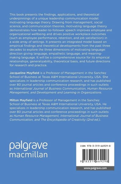 This book presents the findings, applications, and theoretical underpinnings of a unique leadership communication model: motivating language theory. Drawing from management, social science, and communication theories, motivating language theory demonstrates how leader-to-follower speech improves employee and organizational well-being and drives positive workplace outcomes (such as employee performance, retention, and job satisfaction) in a wide array of settings. It presents an integrated model based on empirical findings and theoretical developments from the past three decades to explore the three dimensions of motivating language: direction giving language, empathetic language, and meaning-making language. It will be a comprehensive source for its empirical relationships, generalizability, theoretical basis, and future directions for research and practice.