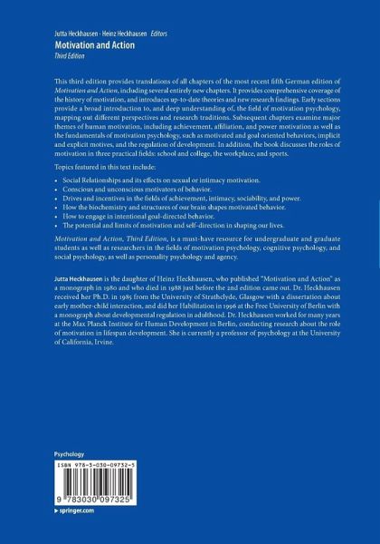 The potential and limits of motivation and self-direction in shaping our lives.Motivation and Action, Third Edition, is a must-have resource for undergraduate and graduate students as well as researchers in the fields of motivation psychology, cognitive psychology, and social psychology, as well as personality psychology and agency.