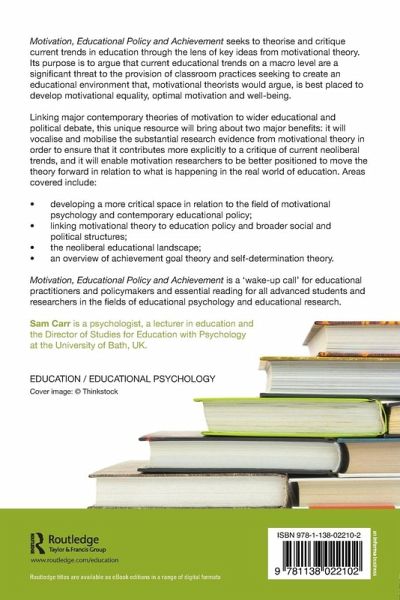 Motivation, Educational Policy and Achievement seeks to critique current trends in education through the lens of key motivational theories. Its purpose will be to argue that current educational trends on a macro level are a significant threat to the provision of micro level classroom practices seeking to create a learning environment in which motivational theorists have demonstrated optimal learning experiences. Areas covered:- An overview of achievement goal theory and self-determination theory Linking motivation theory to education policy and broader social structures Standardised testing and accountability The medicalization of children 'epidemic' Teacher-student relationships