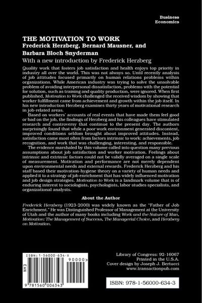 Using workers' accounts of real events that have made them feel good or bad on the job, Herzberg stimulated research and controversy that continue to the present day. The authors surprisingly found that a poor work environment generated discontent, but improved conditions seldom brought about improved attitudes. Instead, satisfaction came most often from factors intrinsic to work: achievements, job recognition, and work that was challenging, interesting, and responsible. Herzberg's strategy of job enrichment has widely influenced motivation and job design.