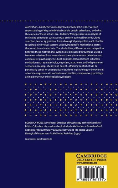 Motivation: A Biobehavioural Approach provides the reader with an understanding of why an individual exhibits certain behaviours, and what the causes of these actions are. Roderick Wong presents an analysis of motivated behaviour such as sexual activity, parental behaviour, food selection, fear or aggression, from a biological perspective, each chapter focussing on individual systems underlying specific motivational states that result in motivated acts. The similarities, differences and integration between these motivational systems are discussed throughout. Using a framework derived from research and theory from animal behaviour and comparative psychology, this book analyses relevant issues in human motivation such as mate choice, nepotism, attachment and independence, sensation-seeking, obesity and parent-offspring conflict. It will be particularly useful for undergraduate students in psychology or behavioural science taking courses in motivation and emotion, comparative psychology, animal behaviour or biological psychology.