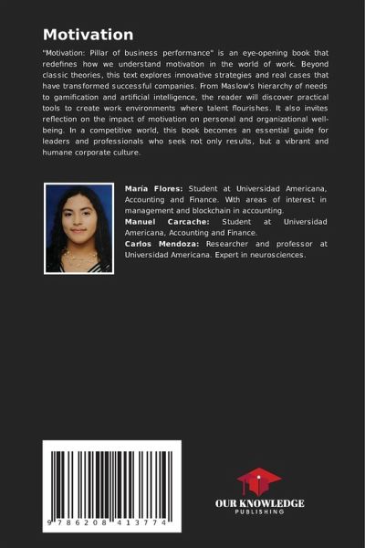 "Motivation: Pillar of business performance" is an eye-opening book that redefines how we understand motivation in the world of work. Beyond classic theories, this text explores innovative strategies and real cases that have transformed successful companies. From Maslow's hierarchy of needs to gamification and artificial intelligence, the reader will discover practical tools to create work environments where talent flourishes. It also invites reflection on the impact of motivation on personal and organizational well-being. In a competitive world, this book becomes an essential guide for leaders and professionals who seek not only results, but a vibrant and humane corporate culture.