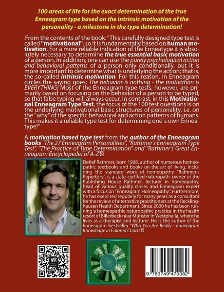 This carefully designed type test is called motivational, so it is fundamentally based on human motivation. For a more reliable indication of the Enneatype it is absolutely necessary to determine the true essential basic motivation of a person. In addition, one can use the purely psychological action and behavioral patterns of a person only conditionally, but it is more important to determine what is underlying the action; that is, the so-called intrinsic motivation. For this reason, in Enneagram circles the saying goes: The behavior is nothing - the motivation is EVERYTHING! Most of the Enneagram type tests, however, are primarily based on focusing on the behavior of a person to be typed, so that false typing will always occur. In contrast, in this Motivational Enneagram Type Test, the focus of the 100 test questions is on the underlying motivational basic structures of personality, i.e. on the "why" of the specific behavioral and action patterns of humans. This makes it a reliable type test for determining one`s own Enneatype!