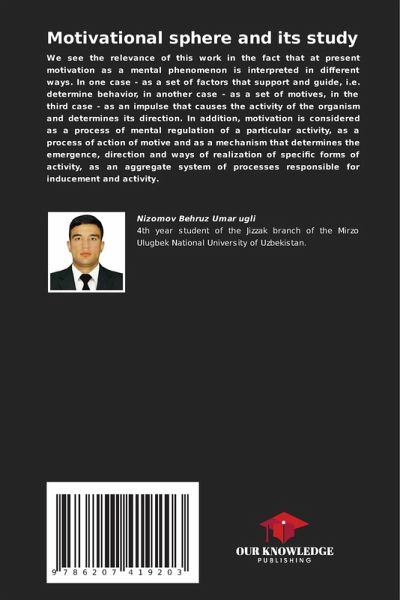 We see the relevance of this work in the fact that at present motivation as a mental phenomenon is interpreted in different ways. In one case - as a set of factors that support and guide, i.e. determine behavior, in another case - as a set of motives, in the third case - as an impulse that causes the activity of the organism and determines its direction. In addition, motivation is considered as a process of mental regulation of a particular activity, as a process of action of motive and as a mechanism that determines the emergence, direction and ways of realization of specific forms of activity, as an aggregate system of processes responsible for inducement and activity.