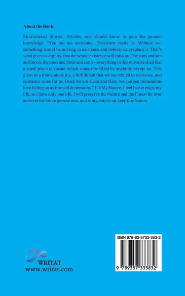 Motivational Stories, Articles, one should know to gain the general knowledge. "You are not accidental. Existence needs us. Without we, something would be missing in existence and nobody can replace it. That's what gives us dignity, that the whole existence will miss us. The stars and sun and moon, the trees and birds and earth - everything in this universe shall feel a small place is vacant which cannot be filled by anybody except us. This gives us a tremendous joy, a fulfillment that we are related to existence, and existence cares for us. Once we are clean and clear, we can see tremendous love falling on us from all dimensions." It's My Nature, I feel like to enjoy my life, as I have only one life. I will preserve the Nature and the Forest for ever and ever for future generations, as it is my duty to up-keep this Nature.