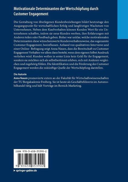 Die Gestaltung von überlegenen Kundenbeziehungen bildet heutzutage den Ausgangspunkt für wirtschaftlichen Erfolg und langfristiges Wachstum von Unternehmen. Neben dem Kaufverhalten können Kunden Wert für ein Unternehmen schaffen, indem sie neue Kunden werben, ihre Erfahrungen mit Anderen teilen oder Feedback geben. Bisher war unklar, welche motivationalen Determinanten diese wünschenswerte Kundenverhaltensweise, das sogenannte Customer Engagement, beeinflussen. Anhand von qualitativen Interviews und einer Online-Befragung zeigt Anna Nauen, dass die Bereitschaft zu Customer Engagement Verhalten vor allem dann besteht, wenn dem eigenen Selbst Ausdruck verliehen wird. Kunden wollen in erster Linie kein Geld für ihr Engagement, sondern sie möchten sich als selbstbestimmt erleben, sich mit Anderen vergleichen und zugehörig fühlen. Die Identifikation und die Förderung des Customer Engagement werden die zukünftige Quelle der Wertschöpfung darstellen.