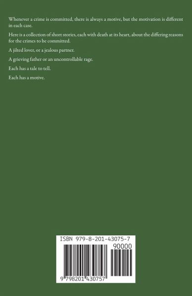Whenever a crime is committed, there is always a motive, but the motivation is different in each case. Here is a collection of short stories, each with death at its heart, about the differing reasons for the crimes to be committed. A jilted lover, or a jealous partner. A grieving father or an uncontrollable rage. Each has a tale to tell. Each has a motive.