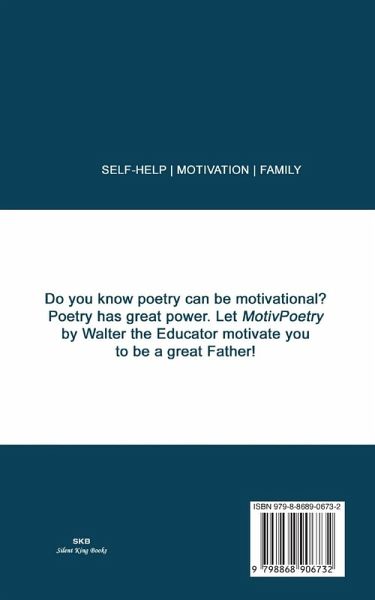 Do you know poetry can be motivational? Poetry has great power. Let MotivPoetry by Walter the Educator motivate you to be a great Father! Creating a poetry book about being a great father can serve multiple purposes. Firstly, it allows for the expression of thoughts, emotions, and experiences in a creative and artistic way. Poetry has the power to capture the essence of fatherhood, highlighting the joys, challenges, and profound moments that come with the role. Secondly, this poetry book can serve as a legacy for children, providing them with a heartfelt and tangible reminder of love and…mehr