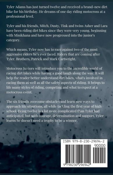 Tyler Adams has just turned twelve and received a brand-new dirt bike for his birthday. He dreams of one day riding motocross at a professional level. Tyler and his friends, Mitch, Dusty, Tink and twins Asher and Lara have been riding dirt bikes since they were very young, beginning with Minikhana and have now progressed into the junior's category. Which means, Tyler now has to race against two of the most aggressive riders he's ever faced. Riders that are coming after Tyler. Brothers, Patrick and Mark Cartwright. Join Tyler and his friends as they compete in the first race day of the year at their local track, Bel Valley MX. Witness the crashes, cheer on Tink as she wins first place, feel the disappointment of those not lucky enough to earn a trophy and stand beside Tyler as he faces his bullies both on and off the track. Motocross Juniors will introduce you to the incredible world of racing dirt bikes while having a good laugh along the way. It will help the reader better understand dirt bikes, what's involved in racing them as well as all the safety aspects of riding. It brings to life many styles of riding, competing and what to expect at a motocross event. Motocross Juniors touches on topics such as bullying, anxiety, ADHD and the emotional journey of being twelve. This story of friendship and dreams is set in a small country town in North Queensland. It elaborates on the life of farming sugar cane, knowing everyone in town and what it's really like growing up where the local take-away is famous for kangaroo burgers and the debate around town is which animal would win in a fight, a crocodile or a shark. The six friends overcome obstacles and learn new ways to approach life situations, all while tackling the first year of high school. Being twelve is a lot more complicated than Tyler had anticipated, but with courage, determination and support, Tyler learns he doesn't need a trophy to be a winner.