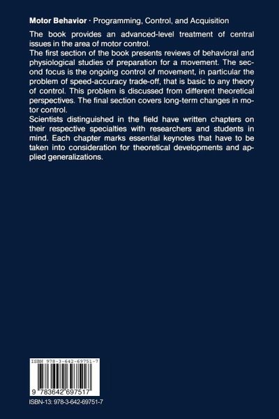 In recent years there has been steadily increasing interest in motor behavior and a growing awareness that a person not only has to know what to do in a particular situation, but also how to do it. The question of how actions are performed is of central concern in the area of motor control. This volume provides an advanced-level treatment of some of the main issues. Experiments concerned with basic processes of motor control typ ically examine very simple movements. At first glance these tasks appear to be far removed from real-world tasks, but it should be kept in mind that they are not studied for their own sake. One of the main reasons for using them is the well-recognized, but sometimes questioned, scientific principle that basic laws may be discovered more easily in simple situations than iIi complex situations. Another reason is that the simple tasks studied constitute building blocks of more complex tasks. For example, some complex skills can be consid ered as consisting of sequences of aimed movements, although, as no one would doubt, knowing everything about these individual movements does not mean knowing everything about, for example, typing. The first two chapters of the present volume focus on behavioral and physiological studies of programming and preparation of move ments. In the first chapter D. Rosenbaum introduces the concept of a motor program that is set up in advance of the overt movement.
