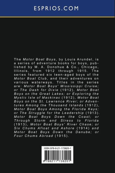 The Motor Boat Boys, by Louis Arundel, is a series of adventure books for boys, published by M. A. Donohue and Co., Chicago, Illinois, from 1912 through 1915. The series featured six teen-aged boys of the Motor Boat Club, and their adventures on various waterways. Titles in the series are: Motor Boat Boys' Mississippi Cruise; or The Dash for Dixie (1912), Motor Boat Boys on the Great Lakes; or Exploring the Mystic Isle of Mackinac (1912), Motor Boat Boys on the St. Lawrence River; or Adventures Among the Thousand Islands (1912), Motor Boat Boys Among the Florida Keys; or The Struggle for the Leadership (1913). Motor Boat Boys Down the Coast; or Through Storm and Stress to Florida (1913), Motor Boat Boys' River Chase; or Six Chums Afloat and Ashore (1914) and Motor Boat Boys Down the Danube; or Four Chums Abroad (1915).