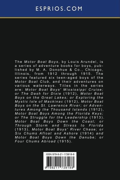 The Motor Boat Boys, by Louis Arundel, is a series of adventure books for boys, published by M. A. Donohue and Co., Chicago, Illinois, from 1912 through 1915. The series featured six teen-aged boys of the Motor Boat Club, and their adventures on various waterways. Titles in the series are: Motor Boat Boys' Mississippi Cruise; or The Dash for Dixie (1912), Motor Boat Boys on the Great Lakes; or Exploring the Mystic Isle of Mackinac (1912), Motor Boat Boys on the St. Lawrence River; or Adventures Among the Thousand Islands (1912), Motor Boat Boys Among the Florida Keys; or The Struggle for the Leadership (1913). Motor Boat Boys Down the Coast; or Through Storm and Stress to Florida (1913), Motor Boat Boys' River Chase; or Six Chums Afloat and Ashore (1914) and Motor Boat Boys Down the Danube; or Four Chums Abroad (1915).