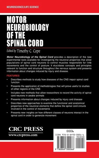 Traumatic injuries of the spinal cord continue to be the most common cause of permanent paralysis in young adults in the United States. New information has emerged on the response of spinal neurons to injury of either the spinal cord or peripheral nerves demonstrating that dendrites of injured motoneurons take on characteristics of axons. These and other new developments have helped to promote an exciting new era in the study of spinal cord neurobiology. Motor Neurobiology of the Spinal Cord provides a description of the recent conceptual and technical advances in the field. It provides a description of the new experimental tools available for investigating the neuronal properties that allow populations of spinal cord neurons to control muscles responsible for limb movements and posture. It covers topics ranging from genetics to kinematics and examines cells, tissues, or whole animals in species ranging from fish to humans that are normal, injured, or diseased. By integrating data derived from many new approaches, you'll learn about how spinal cord circuits operate under a variety conditions and about new and exciting inroads being made in motor neurobiology of the spinal cord. Motor Neurobiology of the Spinal Cord elucidates concepts and principles relevant to function and structure throughout the nervous system and presents information about changes induced by injury and disease.