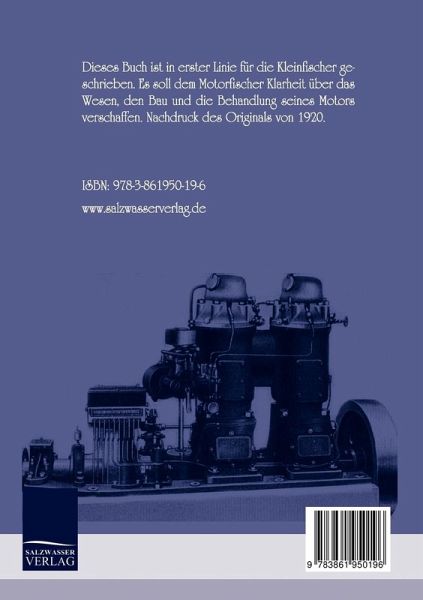 Dieses Buch ist in erster Linie für die Kleinfischer geschrieben. Es soll dem Motorfischer Klarheit über das Wesen, den Bau und die Behandlung seines Motors verschaffen. Nachdruck des Originals von 1920.