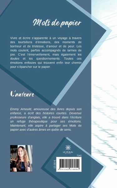 Vivre et écrire s¿apparente à un voyage à travers des tourbillons d¿émotions, des moments de bonheur et de tristesse, d¿amour et de peur. Les mots coulent, parfois accompagnés de larmes de joie. C¿est l¿émerveillement, mais également les doutes et les questionnements. Toutes ces émotions enfouies qui trouvent enfin leur chemin pour s¿épancher sur le papier.