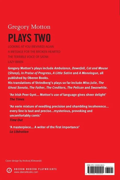 Includes the plays Looking at You (Revived) Again, A Message for the Broken Hearted, The Terrible Voice of Satan and Lazy Brien "An Irish Peer Gynt... Motton's use of language gives sheer delight" - The Times "An eerie mixture of needling precision and shambling incoherence... every line is taught and precise... mysterious, provoking and uncomfortably comic." - Time Out "A masterpiece... A writer of the first importance" - La Libération