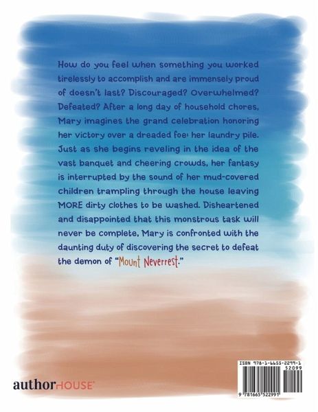 How do you feel when something you worked tirelessly to accomplish and are immensely proud of doesn't last? Discouraged? Overwhelmed? Defeated? After a long day of household chores, Mary imagines the grand celebration honoring her victory over a dreaded foe: her laundry pile. Just as she begins reveling in the idea of the vast banquet and cheering crowds, her fantasy is interrupted by the sound of her mud-covered children trampling through the house leaving MORE dirty clothes to be washed. Disheartened and disappointed that this monstrous task will never be complete, Mary is confronted with the daunting duty of discovering the secret to defeat the demon of "Mount Neverrest."
