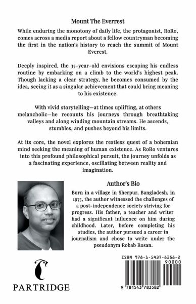While enduring the monotony of daily life, the protagonist, RoRo, comes across a media report about a fellow countryman becoming the first in the nation's history to reach the summit of Mount Everest. Deeply inspired, the 35-year-old envisions escaping his endless routine by embarking on a climb to the world's highest peak. Though lacking a clear strategy, he becomes consumed by the idea, seeing it as a singular achievement that could bring meaning to his existence. With vivid storytelling-at times uplifting, at others melancholic-he recounts his journeys through breathtaking valleys and along winding mountain streams. He ascends, stumbles, and pushes beyond his limits. At its core, the novel explores the restless quest of a bohemian mind seeking the meaning of human existence. As RoRo ventures into this profound philosophical pursuit, the journey unfolds as a fascinating experience, oscillating between reality and imagination.