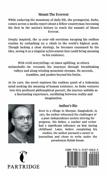 While enduring the monotony of daily life, the protagonist, RoRo, comes across a media report about a fellow countryman becoming the first in the nation's history to reach the summit of Mount Everest. Deeply inspired, the 35-year-old envisions escaping his endless routine by embarking on a climb to the world's highest peak. Though lacking a clear strategy, he becomes consumed by the idea, seeing it as a singular achievement that could bring meaning to his existence. With vivid storytelling-at times uplifting, at others melancholic-he recounts his journeys through breathtaking valleys and along winding mountain streams. He ascends, stumbles, and pushes beyond his limits. At its core, the novel explores the restless quest of a bohemian mind seeking the meaning of human existence. As RoRo ventures into this profound philosophical pursuit, the journey unfolds as a fascinating experience, oscillating between reality and imagination.