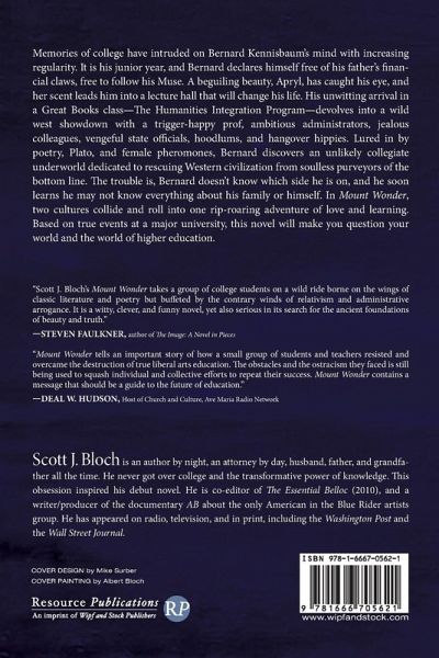 Memories of college have intruded on Bernard Kennisbaum's mind with increasing regularity. It is his junior year, and Bernard declares himself free of his father's financial claws, free to follow his Muse. A beguiling beauty, Apryl, has caught his eye, and her scent leads him into a lecture hall that will change his life. His unwitting arrival in a Great Books class--The Humanities Integration Program--devolves into a wild west showdown with a trigger-happy prof, ambitious administrators, jealous colleagues, vengeful state officials, hoodlums, and hangover hippies. Lured in by poetry, Plato, and female pheromones, Bernard discovers an unlikely collegiate underworld dedicated to rescuing Western civilization from soulless purveyors of the bottom line. The trouble is, Bernard doesn't know which side he is on, and he soon learns he may not know everything about his family or himself. In Mount Wonder, two cultures collide and roll into one rip-roaring adventure of love and learning. Based on true events at a major university, this novel will make you question your world and the world of higher education.