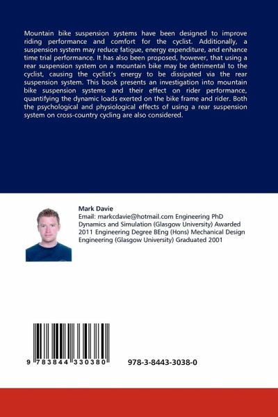 Mountain bike suspension systems have been designed to improve riding performance and comfort for the cyclist. Additionally, a suspension system may reduce fatigue, energy expenditure, and enhance time trial performance. It has also been proposed, however, that using a rear suspension system on a mountain bike may be detrimental to the cyclist, causing the cyclist's energy to be dissipated via the rear suspension system. This book presents an investigation into mountain bike suspension systems and their effect on rider performance, quantifying the dynamic loads exerted on the bike frame and rider. Both the psychological and physiological effects of using a rear suspension system on cross-country cycling are also considered.
