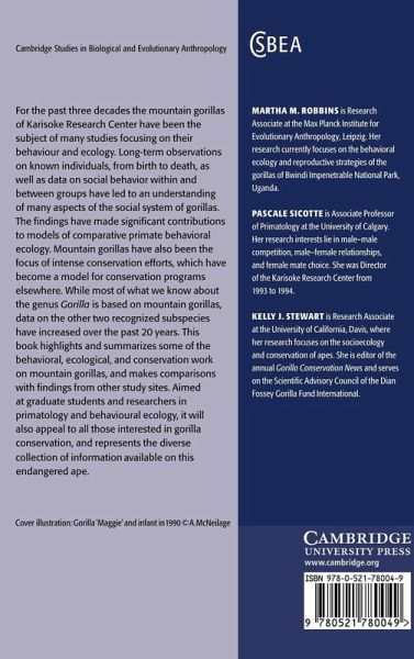 For the past three decades the mountain gorillas of Karisoke Research Center have been the subject of many studies focusing on their behaviour and ecology. Long-term observations on known individuals, from birth to death, and data on social behaviour within and between groups have led to an understanding of many aspects of gorilla social structure. The findings have made significant contributions to models of comparative primate behavioural ecology. Mountain gorillas have also been the focus of intense conservation efforts, which have become a model for conservation programs elsewhere. While most research has focused on mountain gorillas, data on the other two recognised subspecies have increased over the past twenty years. This book highlights and summarises some of the behavioural, ecological and conservation work on mountain gorillas, and makes comparisons with findings from other study sites. It represents the most up-to-date and diverse collection of information available on this endangered ape.