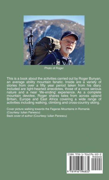 This is a book about the activities carried out by Roger Bunyan, an average ability mountain fanatic. Inside are a variety of stories from over a fifty year period taken from his diary. Included are light-hearted anecdotes, those of a more serious nature and a near 'life-ending' experience. As a complete mountain devotee, Roger shares tales from across upland Britain, Europe and East Africa covering a wide range of activities including walking, climbing and cross-country skiing.