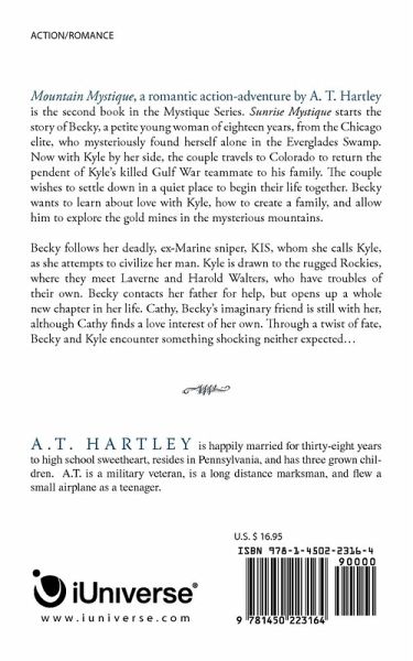 When Becky meets Kyle, she's enthralled by the former Marine sniper. He's nothing like the people she's accustomed to meeting in the elite circles of Chicago. Kyle won't be civilized, and he yearns for adventure. It isn't long before the couple heads to the mountains of Colorado to return a pendant to the family of a Gulf War veteran who battled alongside Kyle. The eighteen-year-old Becky, who still regularly talks to her imaginary friend, Cathy, hopes to settle down to a nice, quiet place where she can learn about love, family, and being an adult. Meanwhile, Kyle wants to explore the gold mines in the mysterious mountains. Deep in the rugged Rockies, the couple becomes friends with Laverne and Harold, the parents of Kyle's friend who was killed in the war. Seeking to help them, Becky contacts her father, but when she does, she opens up a whole new chapter in her life. Join Becky and Kyle in the sequel to Sunrise Mystique as they encounter something shocking that neither one of them expects in the rugged terrain of Colorado in Mountain Mystique.