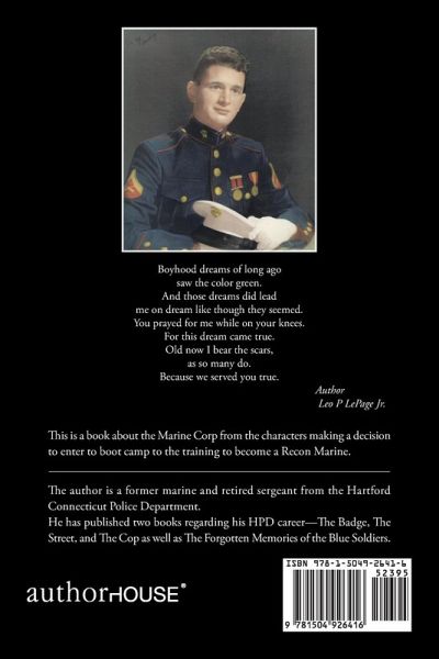 This is a book about the Marine Corp from the characters making a decision to enter to boot camp to the training to become a Recon Marine.