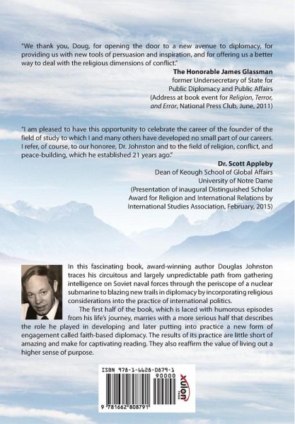 In this fascinating book, award-winning author Douglas Johnston traces his circuitous and largely unpredictable path from gathering intelligence on Soviet naval forces through the periscope of a nuclear submarine to blazing new trails in diplomacy by incorporating religious considerations into the practice of international politics. The first half of the book, which is laced with humorous episodes in his life's journey, marries with a more serious half that describes the role he played in developing and later putting into practice a new form of engagement called Faith-based Diplomacy. The results of its practice are little short of amazing and make for captivating reading. They also reaffirm the value of living out a higher sense of purpose.18. Dr. Douglas Johnston is President Emeritus and founder of the International Center for Religion & Diplomacy. Prior to that he was Executive Vice President and COO of the Center for Strategic and International Studies and before that founding Director of Harvard University's Executive Program in National and International Security. Among his publications are Religion, the Missing Dimension of Statecraft (Oxford, 1994) and his more recent award-winning book, Religion, Terror, and Error: U.S. Foreign Policy and the Challenge of Spiritual Engagement (Praeger, 2011). In 2008, he was identified in Christianity Today as the "Father of Faith-Based Diplomacy." No websiteAn award-winning author, Douglas M. Johnston, Jr., is President Emeritus and founder of the International Center for Religion and Diplomacy (ICRD). He is a distinguished graduate of the U.S. Naval Academy and holds a Masters Degree in Public Administration and a PhD in Political Science from Harvard University. He has served in senior positions in government, the military, and the private sector, including six years at Harvard where he taught international affairs and was founding director of the University's Executive Program in National and International Security. Prior to ICRD, Dr. Johnston was Executive Vice President and COO of the Washington-based Center for Strategic and International Studies. Dr. Johnston has published other works as well, inclusive of the following: 1. Religion, the Missing Dimension of Statecraft (Oxford University Press, 1994) 2. Foreign Policy into the 21st Century: the U.S. Leadership Challenge (CSIS, 1996) 3. Faith-based Diplomacy: Trumping Realpolitik (Oxford University Press, 2003) 4. Religion, Terror, and Error: U.S. Foreign Policy and the Challenge of Spiritual Engagement (Praeger International, 2011) 5. Religion and Foreign Affairs: Essential Readings ( Baylor University Press, 2012)
