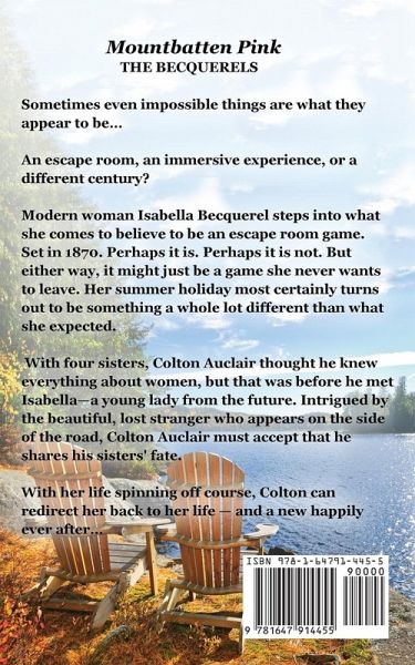 Sometimes even impossible things are what they appear to be... An escape room, an immersive experience, or a different century? Modern woman Isabella Becquerel steps into what she comes to believe to be an escape room game. Set in 1870. Perhaps it is. Perhaps it is not. But either way, it might just be a game she never wants to leave. Her summer holiday most certainly turns out to be something a whole lot different than what she expected. With four sisters, Colton Auclair thought he knew everything about women, but that was before he met Isabella-a young lady from the future. Intrigued by the beautiful, lost stranger who appears on the side of the road, Colton Auclair must accept that he shares his sisters' fate. With her life spinning off course, Colton can redirect her back to her life - and a new happily ever after...