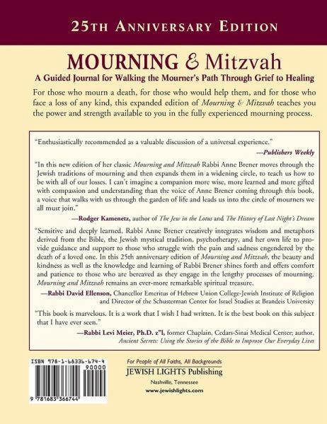 Fully revised with a new author's preface, epilogue, and over a dozen new guided exercises, Anne Brener brings us an innovative integration of Jewish tradition and modern professional resources in this 25th anniversary edition of a modern classic. Mourning & Mitzvah gives spiritual insight and healing wisdom to those who mourn a death, to those who would help them, and to those who face a loss of any kind Mourning & Mitzvah teaches you the power and strength available to you in the fully experienced mourning process. When the temple stood in the ancient city of Jerusalem, mourners walked through the gates and into the courtyard along a specifically designated mourner's path. As they walked, they came face to face with all the other members of the community, who greeted them with the ancestor of the blessing, "May God comfort you among the mourners of Zion and Jerusalem." In this way, the community embraced those suffering bereavement, yet allowed for unique experiences of grief.