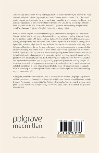 "Johnson uses attachment theory and object relations theory sensitively to explore the ways in which early responses to separation and loss influence writers' visions of art. The use of contemporary psychoanalytic theory is particularly valuable when exploring the literary and cultural implications of bereavement following World War One. To my knowledge, Johnson's book may well be the first to take this approach . Johnson writes clearly and gracefully..." Jeffrey Berman, Professor of English, University at Albany, SUNY, USA