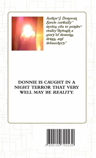 Donnie is stuck in a night terror that very well may be reality. From the author of SOMETHING'S MISSING, spews the tale of a man on a philosophical journey through memories, dreams, nightmares, and, just maybe, reality.