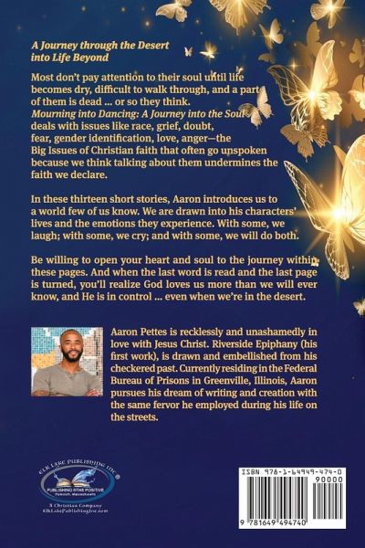 A Journey through the Desert into Life Beyond Most don't pay attention to their soul until life becomes dry, difficult to walk through, and a part of them is dead ... or so they think. Mourning into Dancing: A Journey into the Soul deals with issues like race, grief, doubt, fear, gender identification, love, anger-the Big Issues of Christian faith that often go unspoken because we think talking about them undermines the faith we declare. In these thirteen short stories, Aaron introduces us to a world few of us know. We are drawn into his characters' lives and the emotions they experience. With some we laugh, with some we cry, and with some we will do both. Be willing to open your heart and soul to the journey within these pages. And when the last word is read and the last page is turned, you'll realize God loves us more than we will ever know, and He is in control ... even when we're in the desert.