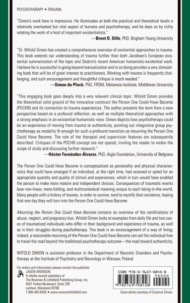 This book introduces the concept of the "Person One Could Have Become" and shows the importance of mourning for individuals with all sorts of traumatic experiences (abuse, neglect, or pregnancy loss). Presented here are philosophical tenets (existential-humanistic) as well as the clinical applications (integrative group psychotherapy). The role of the psychotherapist and appropriate supervision is emphasized. The book utilizes examples of traumatized individuals who struggle during psychotherapy.