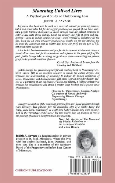 Of course this book will be used as a survival manual for grieving parents, but it is a remarkable kit for the biggest psychological project of our time: ordinary people teaching themselves to work through even the saddest occasions in order to live with strong feeling. Until our century, the gifts of spirit and psychology, such as finding meaning in grief, were regarded as something for the few. Now we all want whatever psychological insight we can lay hand to: we all want the conviction that no matter how fierce our grief, we are part of life, not in rebellion against it. Here is this book, marvelous not just for its therapeutic wisdom and compassionate discussion, but for its research on and reference to the great griefs of the past. Judith Savage takes us along the great wise route, connecting our private griefs to the general condition of us all