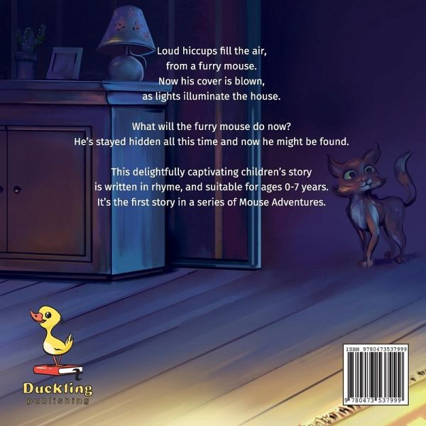 Loud hiccups fill the air, from a furry mouse. Now his cover is blown, as lights illuminate the house. What will the furry mouse do now? He's stayed hidden all this time and now he might be found. This delightfully captivating children's story is written in rhyme, and suitable for ages 0-7 years. It's the first story in a series of Mouse Adventures.