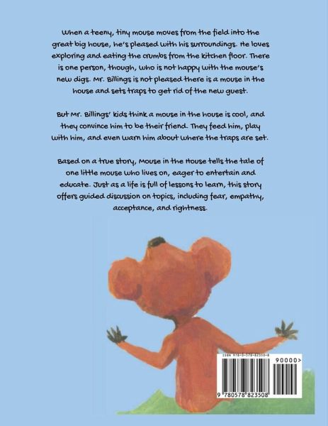 When the teeny tiny mouse moves from the field into the great big house, he's pleased with his surroundings. He loves exploring and eating the crumbs from the kitchen floor. There is one person, though, who is not happy with the mouse's new digs. Mr. Billings is not pleased there is a mouse in the house and sets traps to get rid of the new guest. But Mr. Billings' kids think a mouse in the house is cool, and they convince him to be their friend. They feed him, play with him, and even warn him about where the traps are set. Based on a true story, Mouse in the House tells the tale of one little mouse who lives on, eager to entertain and educate. Just as life is full of lessons to learn, this story offers topics for guided discussion, including fear, empathy, acceptance, and rightness.