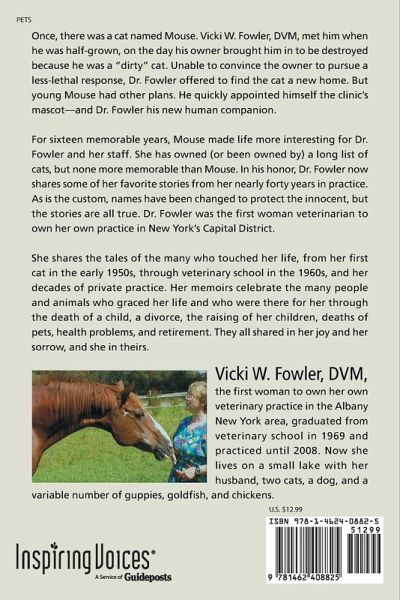 Once, there was a cat named Mouse. Vicki W. Fowler, DVM, met him when he was half-grown, on the day his owner brought him in to be destroyed because he was a "dirty" cat. Unable to convince the owner to pursue a less-lethal response, Dr. Fowler offered to find the cat a new home. But young Mouse had other plans. He quickly appointed himself the clinic's mascot-and Dr. Fowler his new human companion. For sixteen memorable years, Mouse made life more interesting for Dr. Fowler and her staff. She has owned (or been owned by) a long list of cats, but none more memorable than Mouse. In his honor, Dr. Fowler now shares some of her favorite stories from her nearly forty years in practice. As is the custom, names have been changed to protect the innocent, but the stories are all true. Dr. Fowler was the first woman veterinarian to own her own practice in New York's Capital District. She shares the tales of the many who touched her life, from her first cat in the early 1950s, through veterinary school in the 1960s, and her decades of private practice. Her memoirs celebrate the many people and animals who graced her life and who were there for her through the death of a child, a divorce, the raising of her children, deaths of pets, health problems, and retirement. They all shared in her joy and her sorrow, and she in theirs.