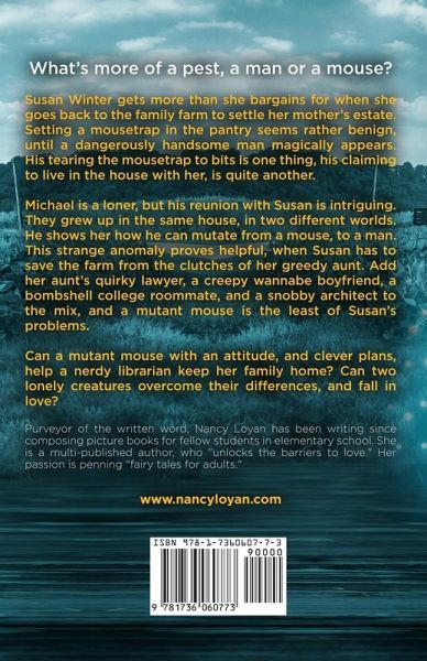 What's more of a pest, a man or a mouse? Susan Winter gets more than she bargains for when she goes back to the family farm to settle her mother's estate. Memories of the past surround her. Setting a mousetrap in the pantry seems rather benign, until a dangerously handsome man magically appears. His tearing the mousetrap to bits is one thing, his claiming to live in the house with her, is quite another. Michael is a loner, but his reunion with Susan is intriguing. They grew up in the same house, in two different worlds. He shows her how he can mutate from a mouse, to a man, a strange anomaly that proves helpful. Susan has to save the farm from the clutches of her greedy aunt, who plans on turning the property into an exclusive housing development. Add her aunt's quirky, devious lawyer to add to her angst. Susan's neighbor and childhood boyfriend, has plans of his own. Her bombshell college roommate, and a snobby architect join the mix of un wanted and troublesome guests. A mutant mouse is the least of Susan's problems. Can a mutant mouse with an attitude, and clever plans, help a nerdy librarian keep their family farm? Can two lonely creatures overcome their differences, and fall in love?