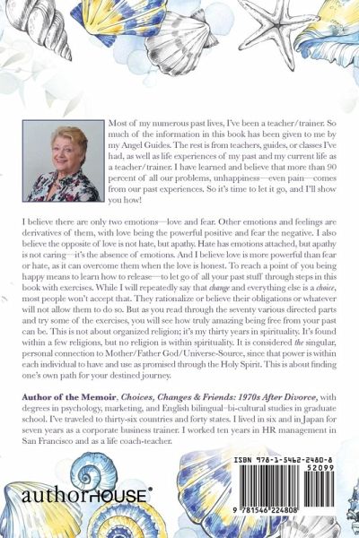 Most of my numerous past lives, Ive been a teacher/trainer. So much of the information in this book has been given to me by my Angel Guides. The rest is from teachers, guides, or classes Ive had, as well as life experiences of my past and my current life as a teacher/trainer. I have learned and believe that more than 90 percent of all our problems, unhappinesseven paincomes from our past experiences. So its time to let it go, and Ill show you how! I believe there are only two emotionslove and fear. Other emotions and feelings are derivatives of them, with love being the powerful positive and fear the negative. I also believe the opposite of love is not hate, but apathy. Hate has emotions attached, but apathy is not caringits the absence of emotions. And I believe love is more powerful than fear or hate, as it can overcome them when the love is honest. To reach a point of you being happy means to learn how to releaseto let go of all your past stuff through steps in this book with exercises. While I will repeatedly say that change and everything else is a choice, most people wont accept that. They rationalize or believe their obligations or whatever will not allow them to do so. But as you read through the seventy various directed parts and try some of the exercises, you will see how truly amazing being free from your past can be. This is not about organized religion; its my thirty years in spirituality. Its found within a few religions, but no religion is within spirituality. It is considered the singular, personal connection to Mother/Father God/Universe-Source, since that power is within each individual to have and use as promised through the Holy Spirit. This is about finding ones own path for your destined journey. Author of the Memoir, Choices, Changes & Friends: 1970s After Divorce, with degrees in psychology, marketing, and English bilingualbi-cultural studies in graduate school. Ive traveled to thirty-six countries and forty states. I lived in six and in Japan for seven years as a corporate business trainer. I worked ten years in HR management in San Francisco and as a life coach-teacher.