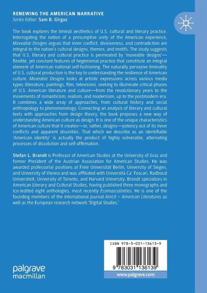 The book explores the liminal aesthetics of U.S. cultural and literary practice. Interrogating the notion of a presumptive unity of the American experience, Moveable Designs argues that inner conflict, divisiveness, and contradiction are integral to the nation's cultural designs, themes, and motifs. The study suggests that U.S. literary and cultural practice is permeated by 'moveable designs'-flexible, yet constant features of hegemonial practice that constitute an integral element of American national self-fashioning. The naturally pervasive liminality of U.S. cultural production is the key to understanding the resilience of American culture. Moveable Designs looks at artistic expressions across various media types (literature, paintings, film, television), seeking to illuminate critical phases of U.S. American literature and culture-from the revolutionary years to the movements of romanticism, realism, and modernism, up to the postmodern era. It combines a wide array of approaches, from cultural history and social anthropology to phenomenology. Connecting an analysis of literary and cultural texts with approaches from design theory, the book proposes a new way of understanding American culture as design. It is one of the unique characteristics of American culture that it creates-or, rather, designs-potency out of its inner conflicts and apparent disunities. That which we describe as an identifiable 'American identity' is actually the product of highly vulnerable, alternating processes of dissolution and self-affirmation.