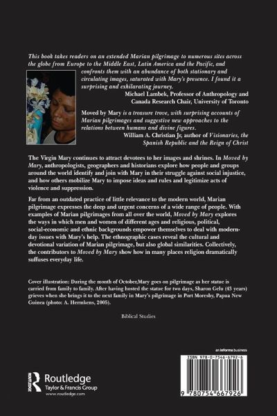 The Virgin Mary continues to attract devotees to her images and shrines. In Moved by Mary, anthropologists, geographers and historians explore how people and groups around the world identify and join with Mary in their struggle against social injustice, and how others mobilize Mary to impose ideas and rules and legitimize acts of violence and suppression. Far from an outdated practice of little relevance to the modern world, Marian pilgrimage expresses the deep and urgent concerns of a wide range of people. With examples of Marian pilgrimages from all over the world, Moved by Mary explores the ways in which men and women of different ages and religious, political, social-economic and ethnic backgrounds empower themselves to deal with modern-day issues with Mary´s help. The ethnographic cases reveal the cultural and devotional variation of Marian pilgrimage, but also global similarities. Collectively, the contributors to Moved by Mary show how in many places religion dramatically suffuses everyday life.
